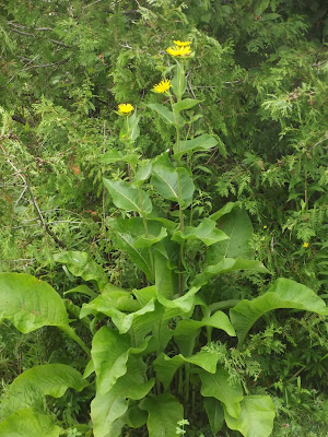 Elecampane. I really like the giant leaves. This plant is almost 5' high. That's a specimen plant. I'm wondering if I should try to collect seed and plant one at home.